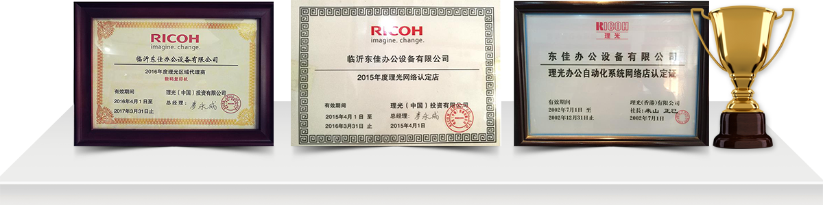 臨沂東佳辦公設(shè)備有限公司成立于1999年,是一家專賣臨沂理光打印機,臨沂復(fù)印打印一體機等理光辦公設(shè)備及專業(yè)維修服務(wù)于一體的臨沂復(fù)印機租賃服務(wù)性公司,在多年來的努力拼搏下,公司發(fā)展的發(fā)展突飛猛進,自2002年至今連續(xù)十九年的理光辦公設(shè)備代理商,先后獲得了理光(我國)授權(quán)臨沂總代理,理光數(shù)碼復(fù)印機,一體機臨沂總代理,理光辦公設(shè)備網(wǎng)絡(luò)認(rèn)證店,理光辦公設(shè)備維修認(rèn)定店等產(chǎn)品代理資質(zhì)及維修資質(zhì)。并配備了大量理光數(shù)碼辦公設(shè)備原裝零配件及其系列的純正耗材。
